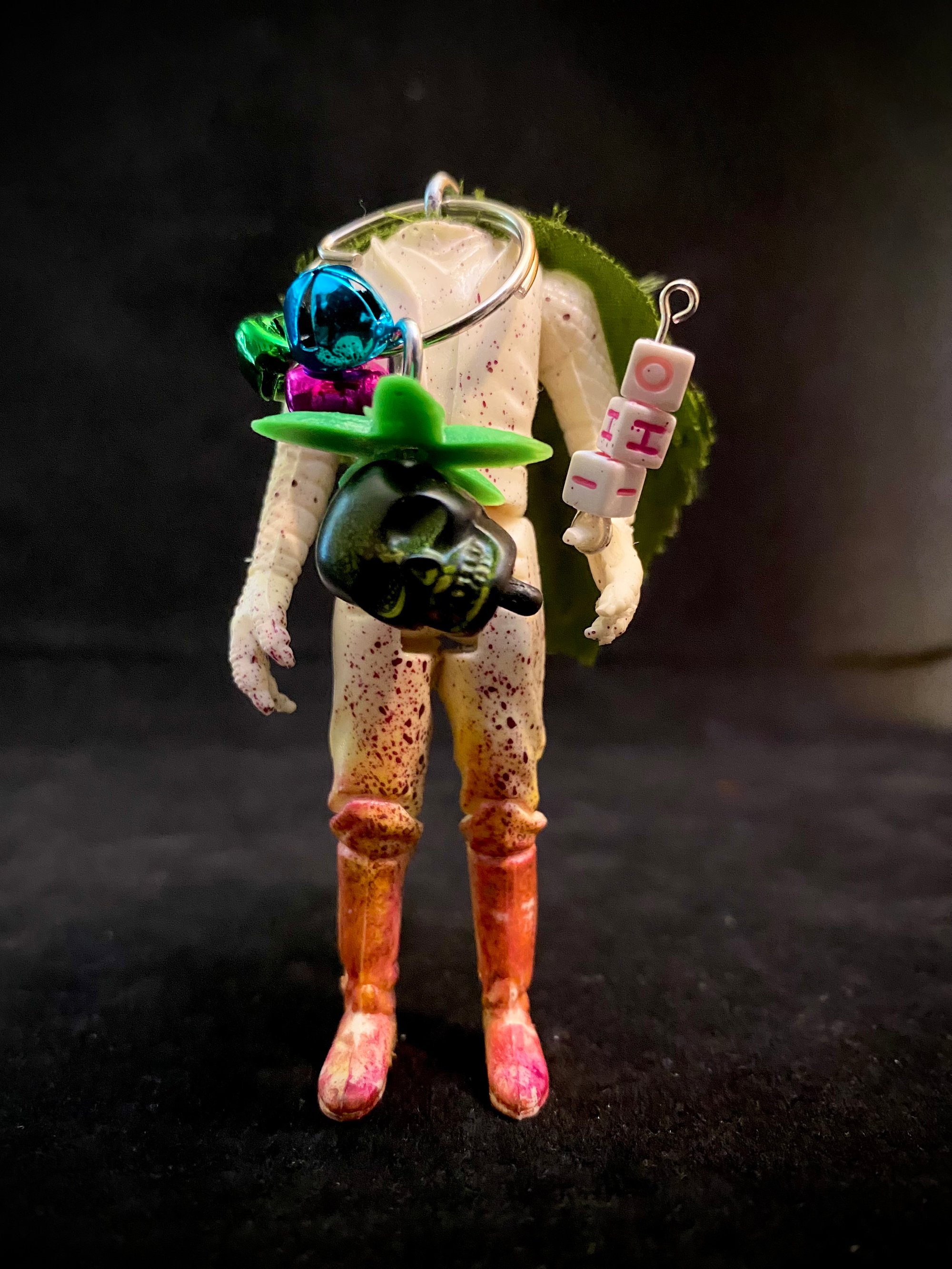 3.75" BOOTLEG RESIN TOY WITH FLORAL EMBELLISHMENT AND KEYCHAIN ACCESSORY